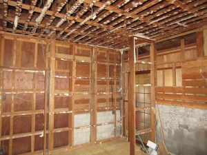 台所とキッチンのリフォーム 2019-05-18 最終更新日時 : 2019-05-18 坂田 ぶわぶわする床張り替えとキッチンの設置替えに伴う天井と壁のリフォーム工事に入りました。今日は、既存のキッチンの取り外しとタイル、天井の不燃材、壁の不燃材をはがして処分しました。キッチンの木部だけの所は今日、その他の木材と共に捨てに行きます。ステンレスがキッチンの内外に張られている物は、簡単にステンレスが剝がれませんので後日処分します。 今日の工事は、水道配管と電気配線と天井下地の解体処分です。