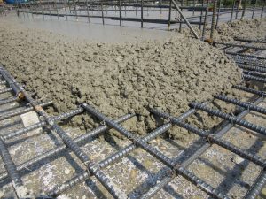 ベース生コンを打ちました 2019-05-23 最終更新日時 : 2019-05-23 坂田 配筋検査が終わり、今日ベタ基礎の生コンを打ちました。生コンの強度は最高の『24』です。ベタ基礎のコンクリートの厚さは15センチ以上と云う基準がありますが、写真の通り弊社では17センチから18センチの厚さで打っています。 D13の鉄筋を100ミリピッチで配筋した所を厚さが20センチ近くあるコンクリートを打っている所と、外周部のコンクリートのさらに厚い部分の打ち込みの様子です。
