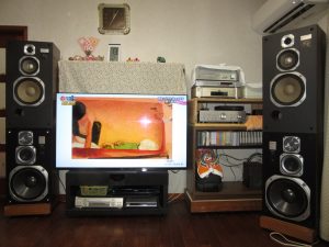社長のお盆休み日報・8月13日(土) 2022-08-13 最終更新日時 : 2022-08-13 坂田 お盆休みの第一日目は、珍しく仕事をしませんでした。先日頂いたステレオセットを通電してみました。 アンプ、カセットレコーダー、チューナーは駄目でした。DVDプレーヤーとスピーカーは使えます。 自宅で2段重ねにしていた上のスピーカーを交換しました。元は上のスピーカーが少し小さかったのですが 交換したスピーカーはほぼ同じ大きさです。カバー外すとやたらスピーカーが目立ちます。